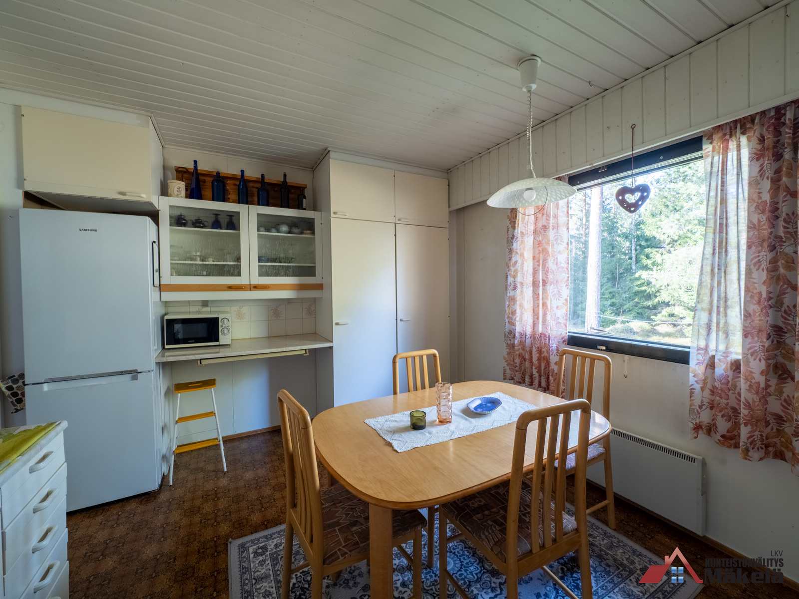 Kodinkoneet uusittu 2015-2020. Varustus: jääkaappi/pakastin, liesituuletin, astianpesukone, kiinteät valaisimet. Lattia: muovi. Seinät: maalattu |